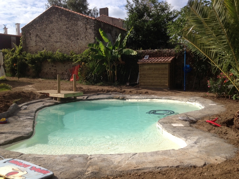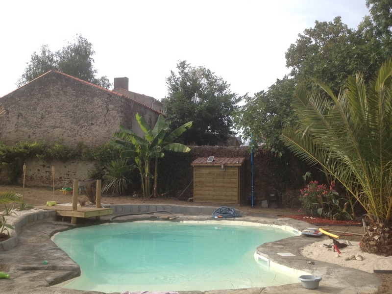 Thank you. You were able to answer my technical questions and you were available when I needed help. The total cost for me up to now for supplies has been 3500 Euros excluding final touches. There are a few creases despite the fact that I welded. The biggest creases are in fact useful because on cleaning they block the dirt. We have not yet sown the grass for the lawn.