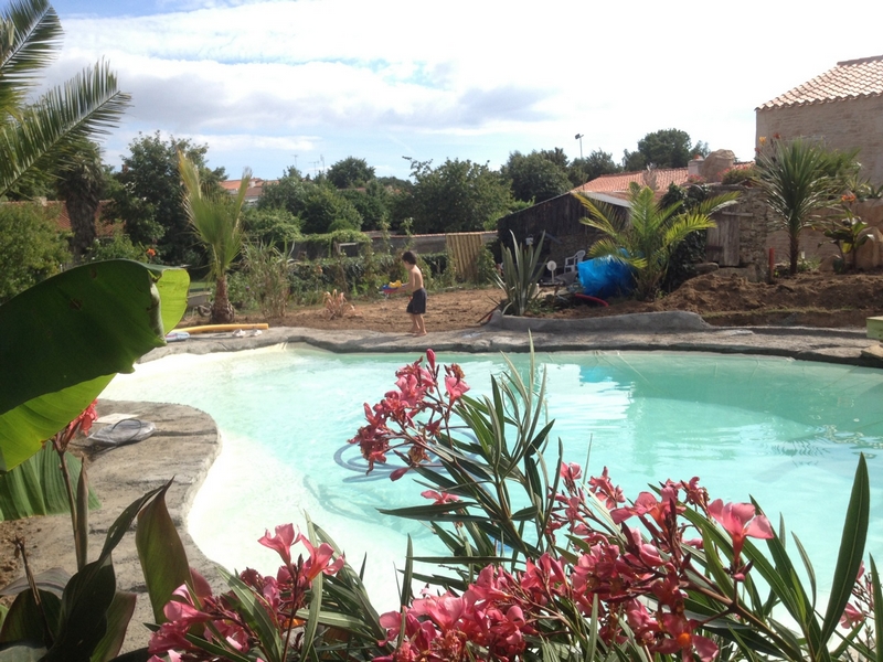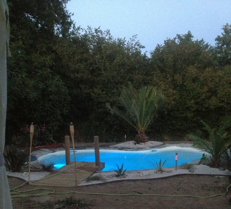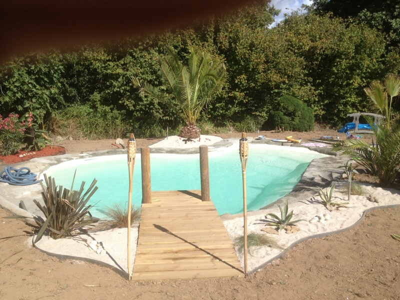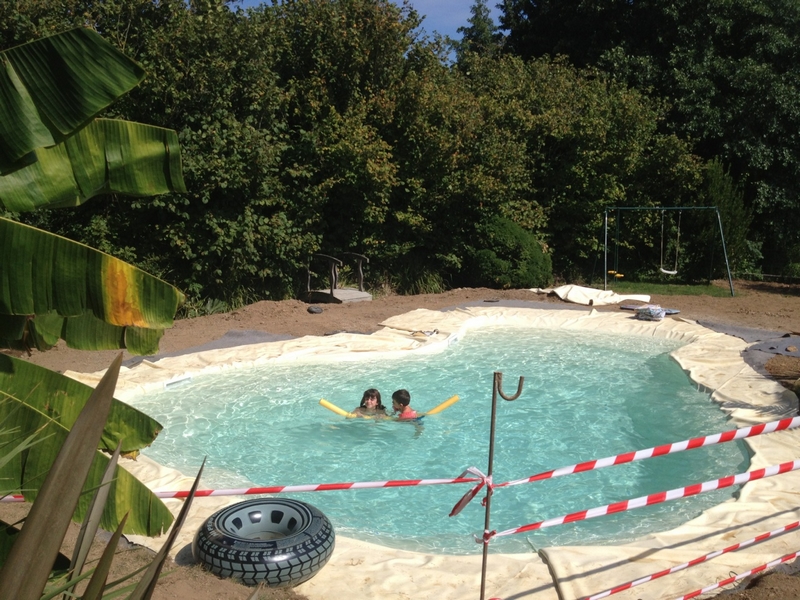 Don't take anything away from the quality of the procedure, I began on the 6th August 2013, ordered the tarpaulin which arrived 12 days later and was swimming on the 23rd August. 120 hours of work on my own and then 4 people to place the 145 kilo membrane, depth 0 to 120 cm at the deepest point, the water temperature for the moment, without a pump, is an average of 23°. »